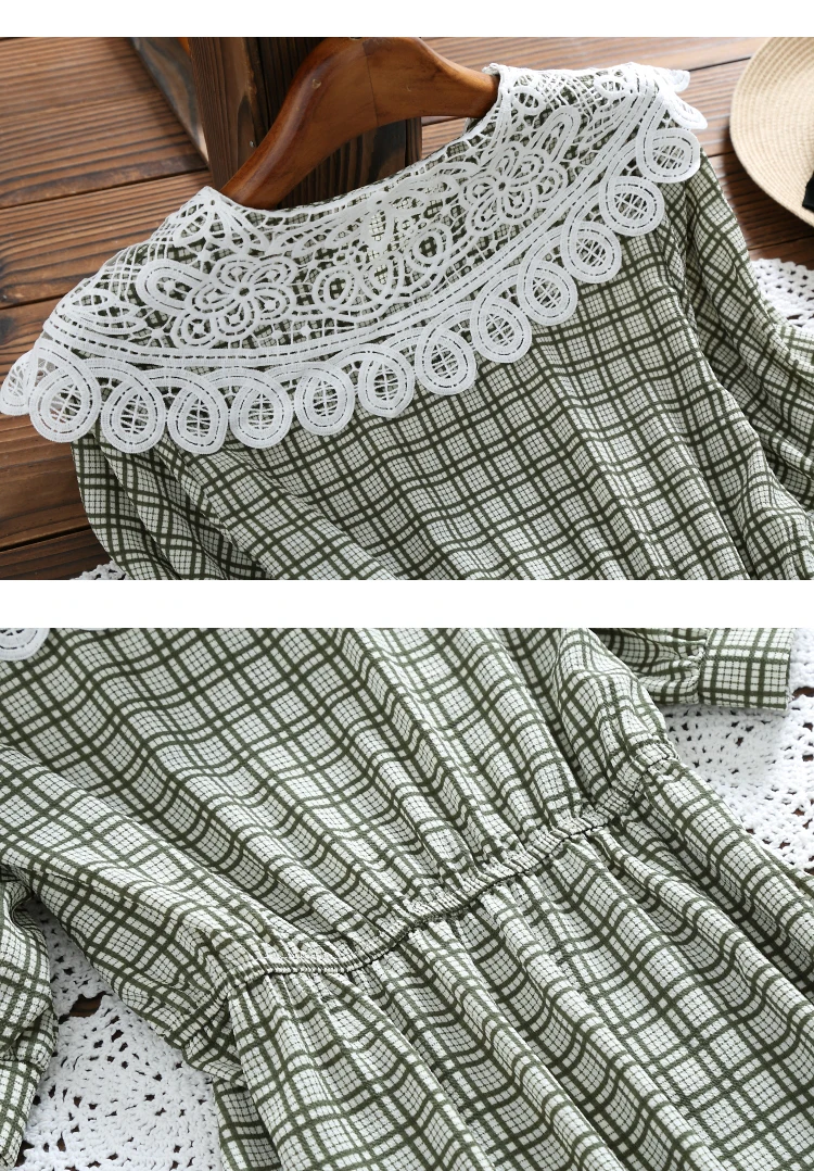 Женское летнее платье с коротким рукавом 2020 Mori Girl Sweet Vestidos, женские кружевные лоскутные шифоновые клетчатые винтажные платья DV931