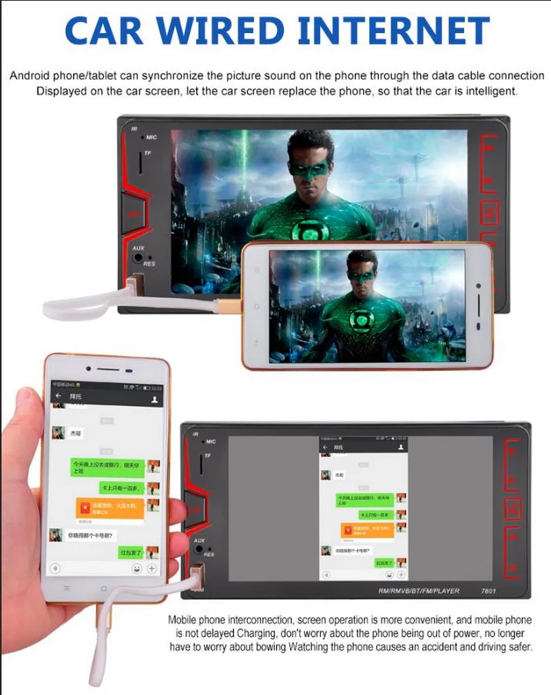 7 дюймов сенсорный экран 7801Емкостный сенсорный экранЭкран Bluetooth + задний вид + MP5 + fm-радио + красочные огни + быстрая зарядка + Мобильный Интернет