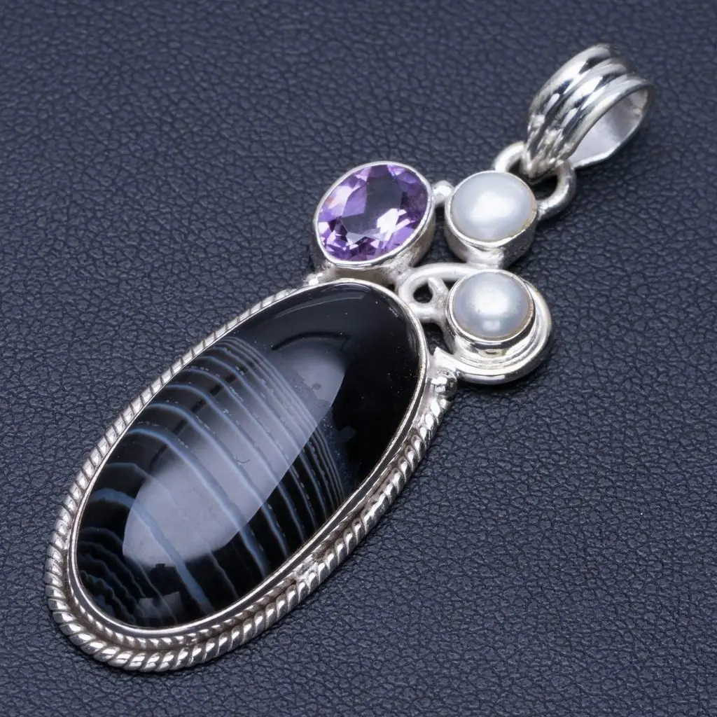 Натуральный ботсванский Агат, речной жемчуг и Аметист панк 925 пробы серебряный кулон 2 1/4 " ; Q0810