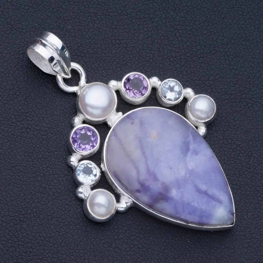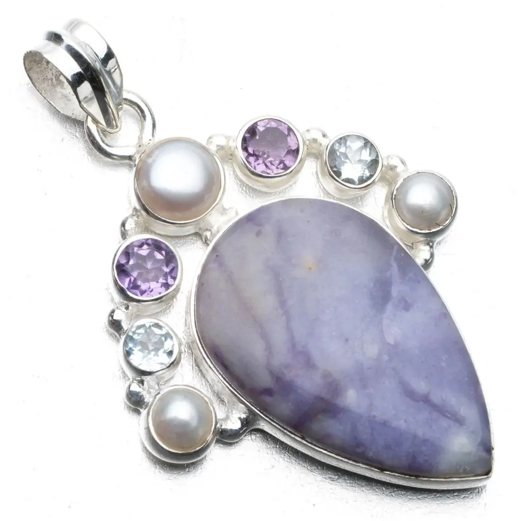 Природный чароит, аметист, голубой топаз и речной жемчуг в стиле панк 925 пробы серебряный кулон 2 " ; P0726