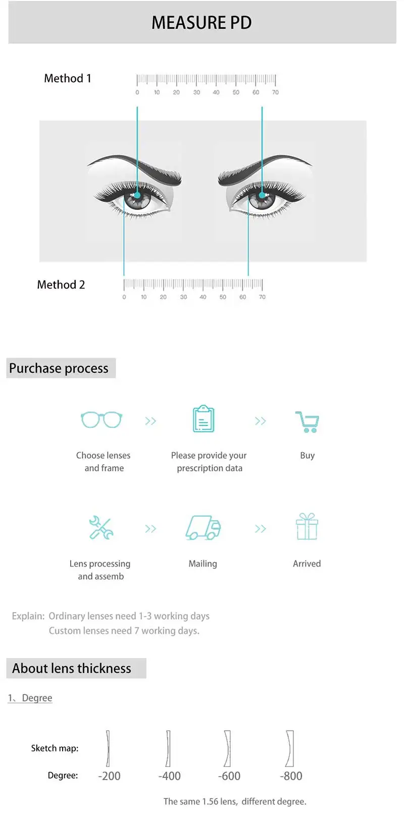 Примечание: Астигматизм более 200 градусов, который относится к Линзы для очков на заказ. Фабрика сделает его для вас отдельно, и они потребуют дополнительной стоимости $10. Спасибо за понимание.