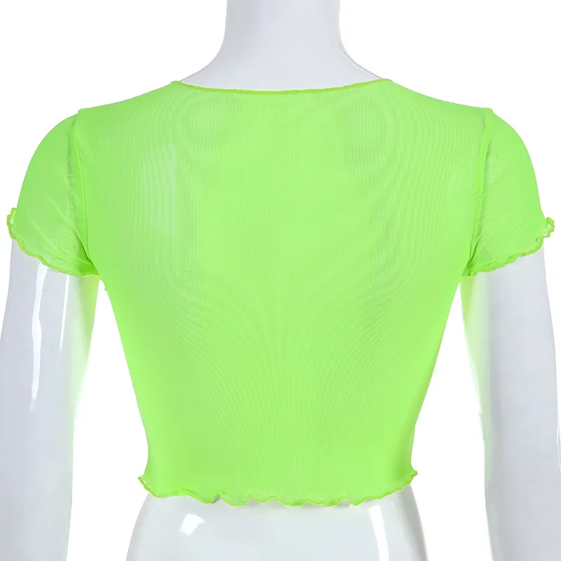 Модный женский флуоресцентный топ с круглым вырезом и коротким рукавом