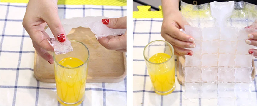 Характеристики продукта: после заполнения воды, зажмите рот мешка и переверните мешок со льдом, чтобы запечатать его автоматически.