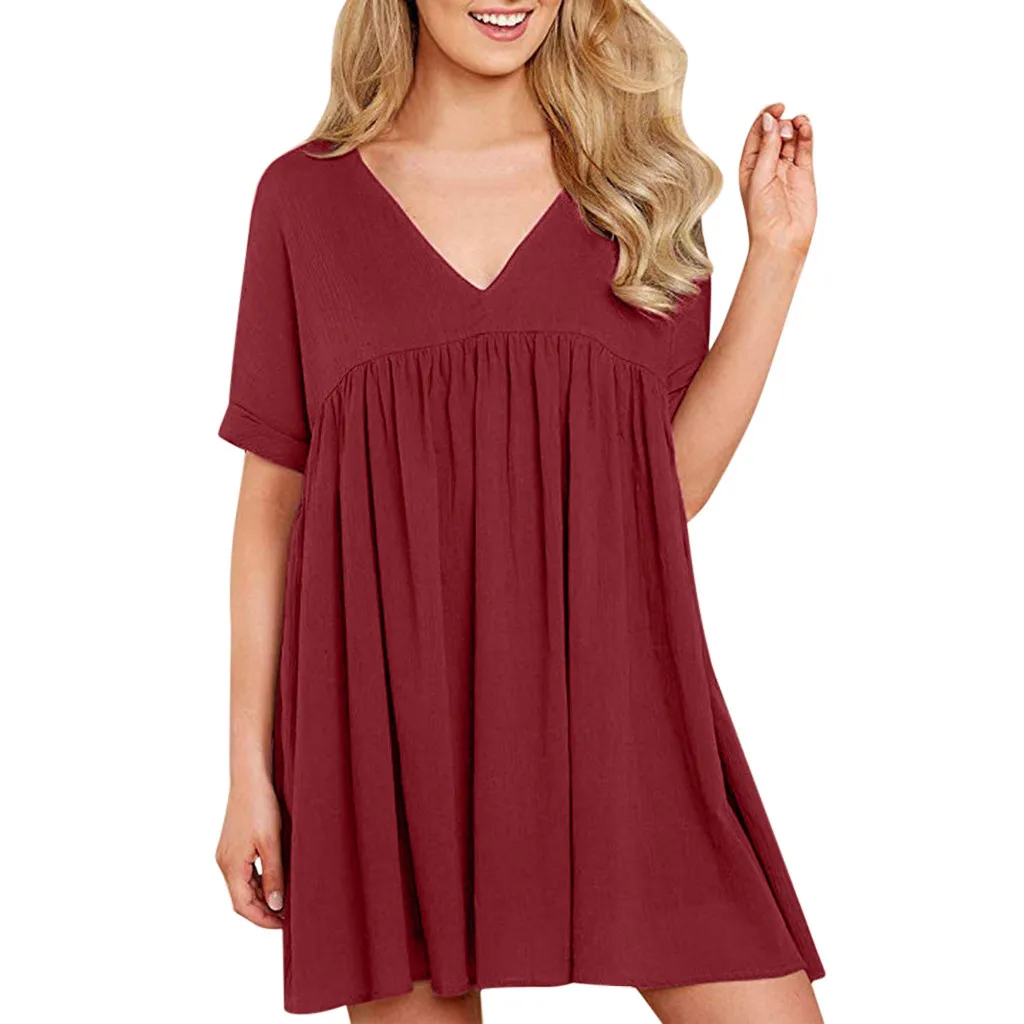 Модное женское с коротким рукавом v-образным вырезом Плиссированное повседневное вечернее короткое платье