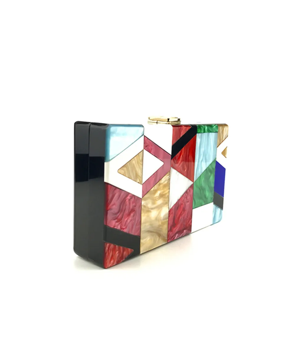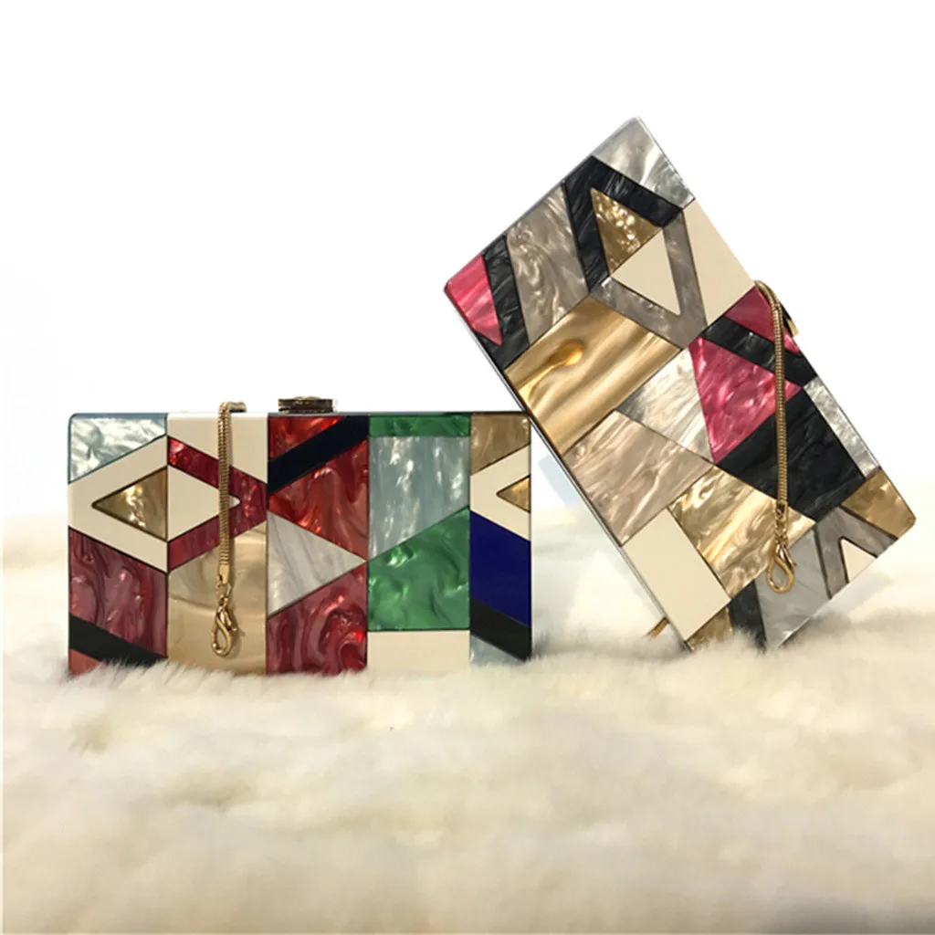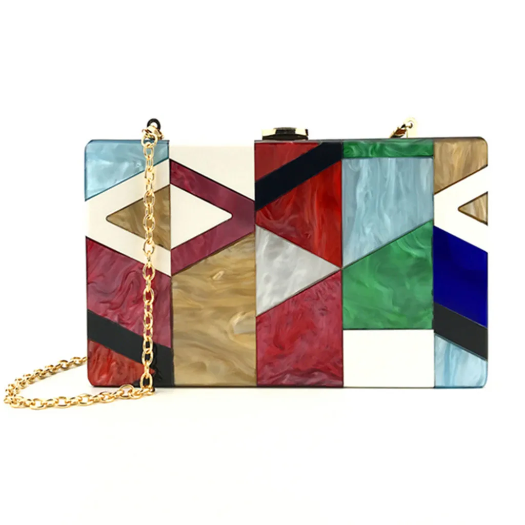 Женская вечерняя сумка с геометрическим рисунком, цветная акриловая коробка для вечеринки