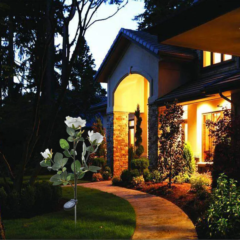 3 головки белый цветок розы солнечный светильник светодиодный декоративный наружный Газон лампа