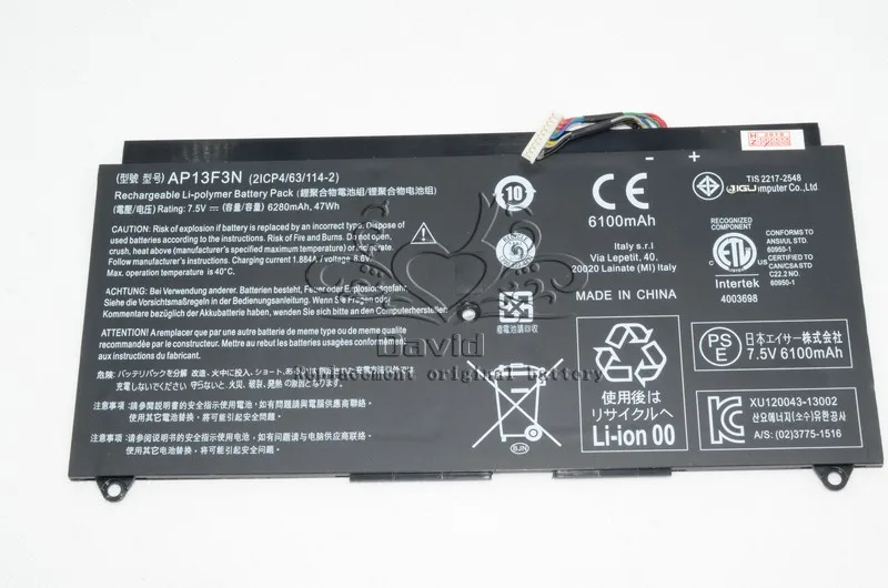 | Аккумулятор ноутбука AP13F3N совместим со следующими моделями: | |
