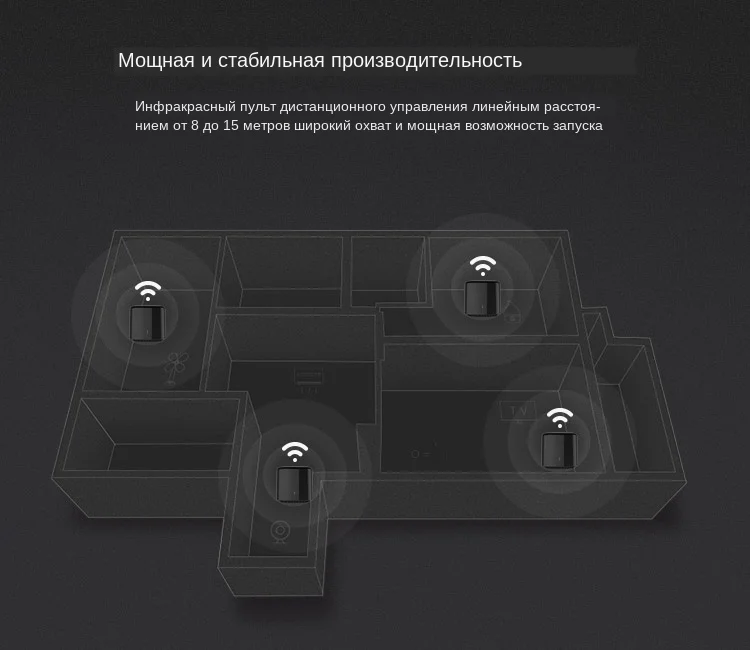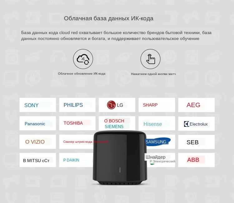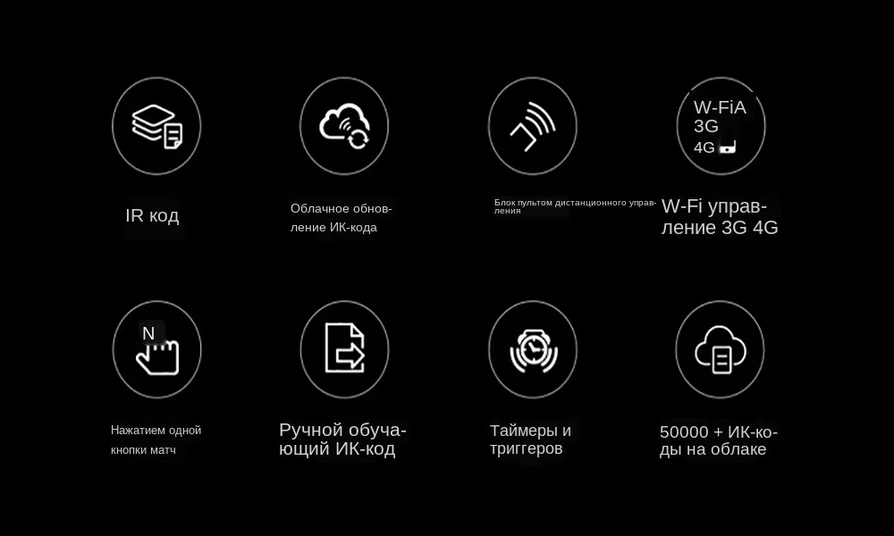Совместим с инфракрасными приборами: кондиционер, телевизор, ТВ-боксы, IP tv, аудио, DVD проекторы, зеркальные камеры и т. д. поддержка автономного обучения, управления большим количеством устройств.
