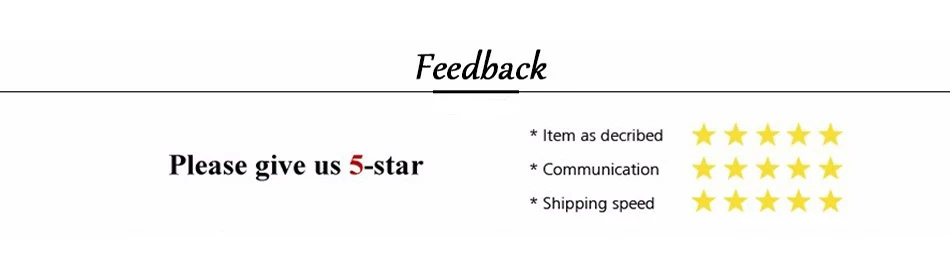 1. Если вы удовлетворены нашими продуктами и услугами, пожалуйста, оставьте положительный отзывы и 5 звезд. Ваши отзывы очень важны для нас.