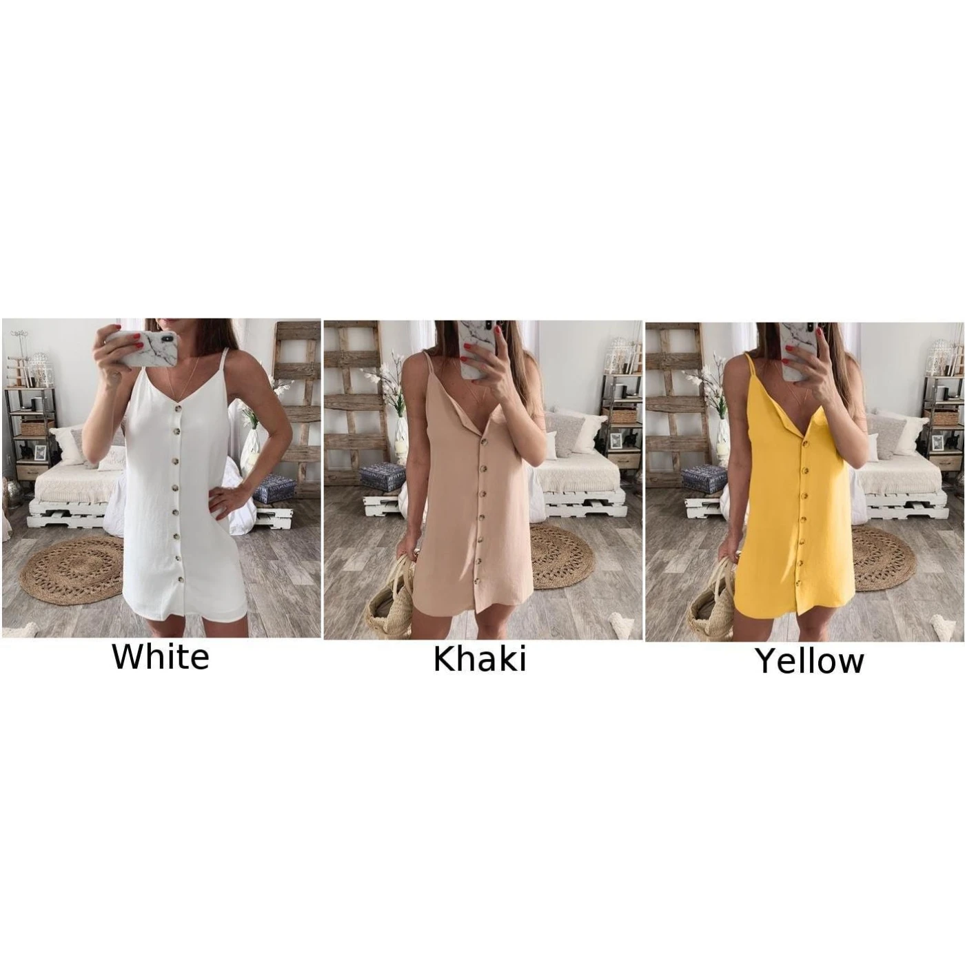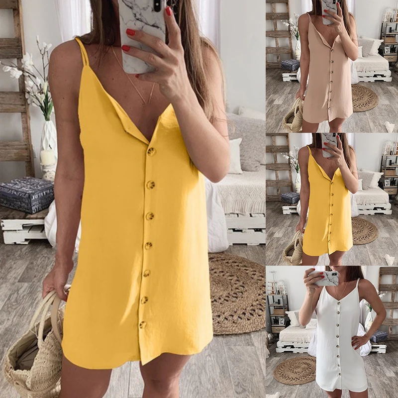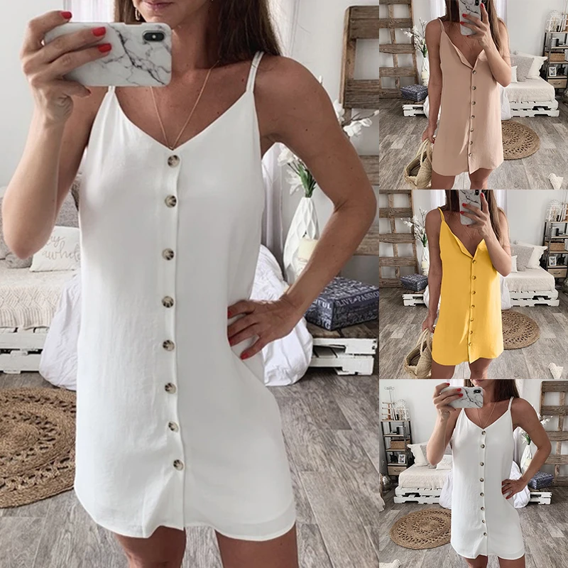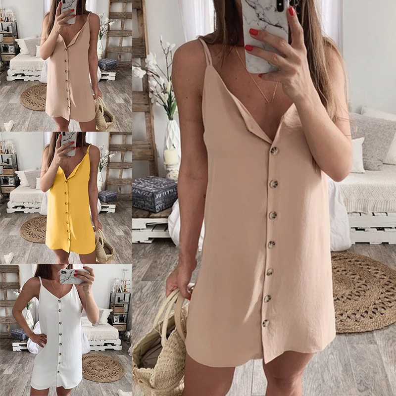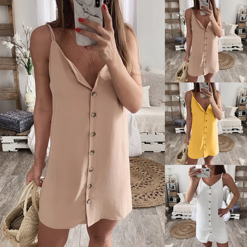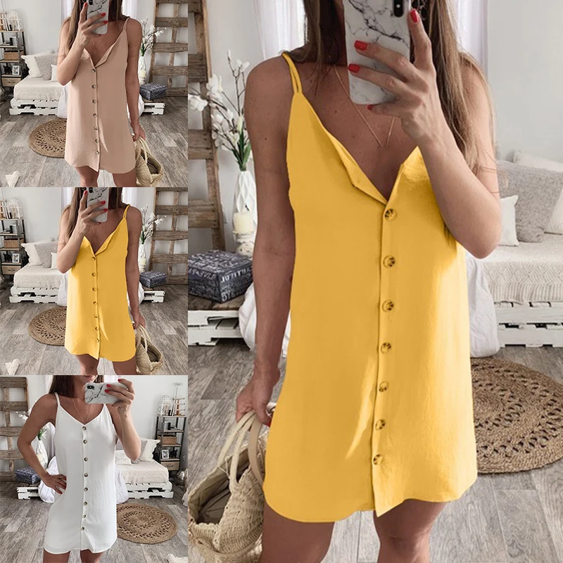 * Описание товара:Бретельках, Пуговицы, без рукавов, сдвиг, Мини Короткое платье