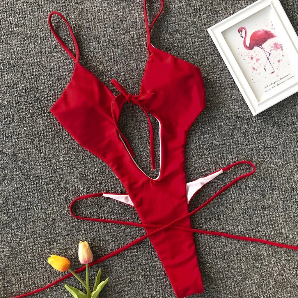 Женский купальник-бикини с перекрещивающимися ремешками, однотонный монокини для морского бассейна, Летняя распродажа, сексуальный купальник