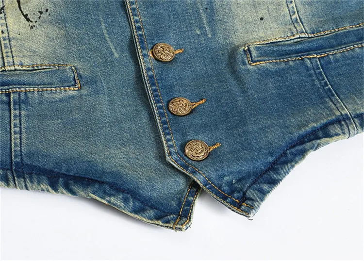 2021 Мужские Винтажные джинсовые жилеты; Модная одежда без рукавов; Куртка брендовая одежда Мужской V жилеты с вырезом, однобортные джинсовые жилеты J2863