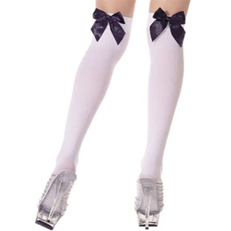 Модные черные красные белые пикантные чулки до бедра Чулки с прозрачным бантом