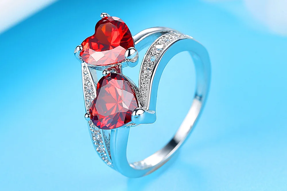Женское Обручальное кольцо из стерлингового серебра 925 пробы с двойным сердцем и