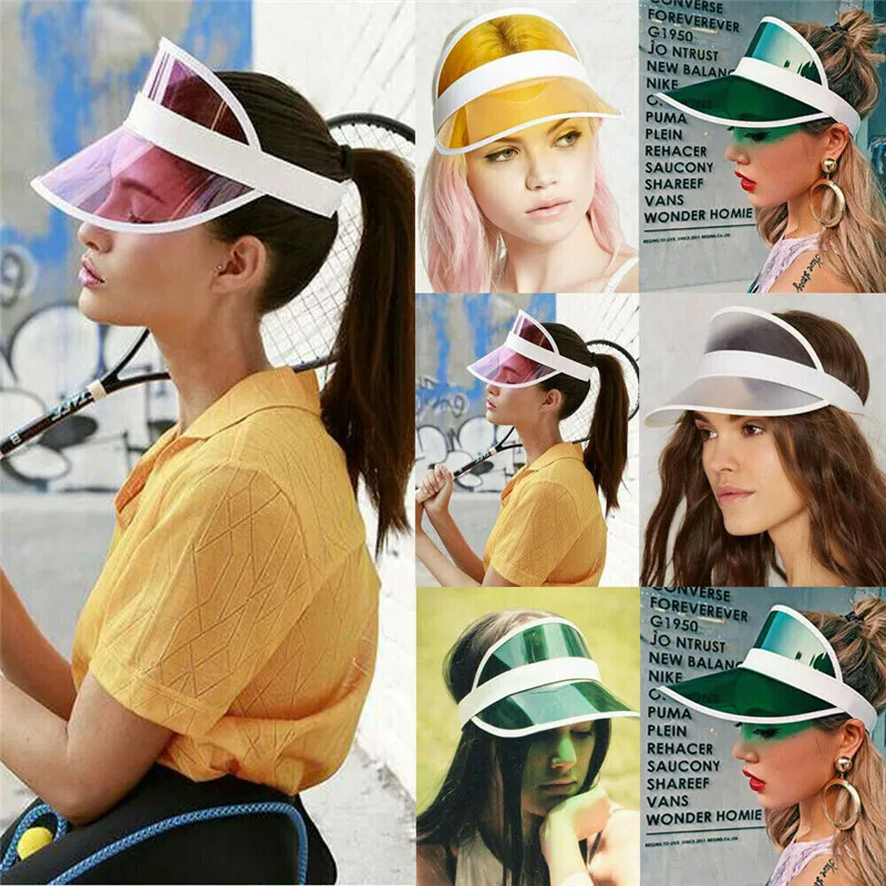 Женская летняя Солнцезащитная шляпа с козырьком вечерние повседневные шляпы с широкими полями ПВХ водонепроницаемый регулируемый эластичный пояс Прозрачный Пластиковый Солнцезащитный крем для взрослых