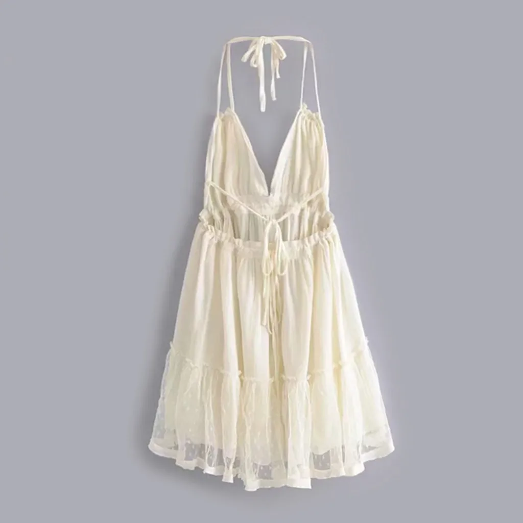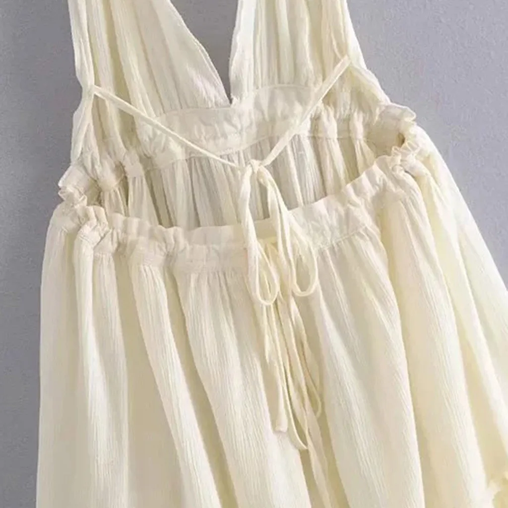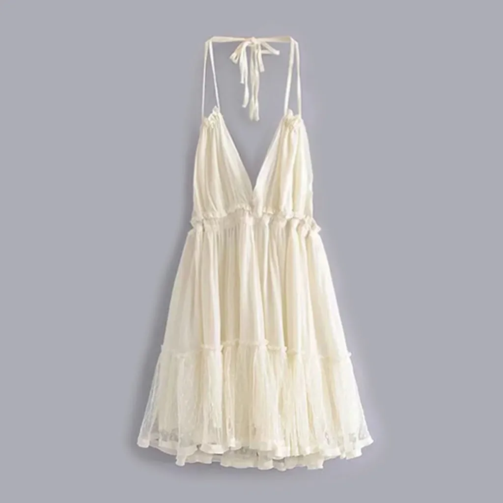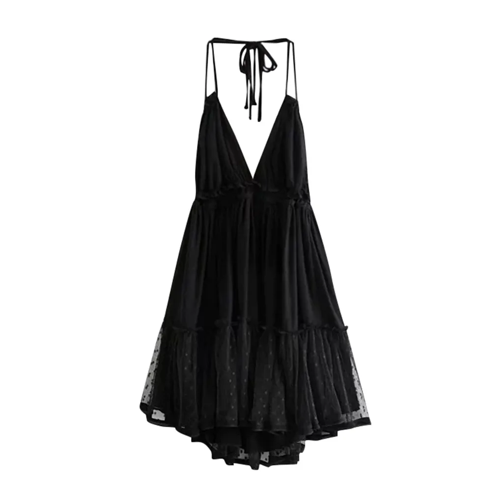 Летнее богемное платье, женское сексуальное платье с открытой спиной, вязанное крючком, гофрированное, v-образный вырез, без рукавов, Клубное коктейльное мини-платье, Оптовая продажа
