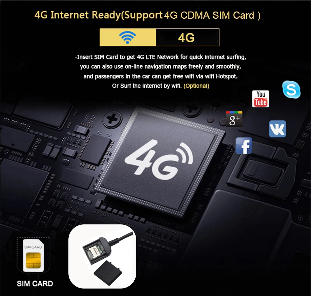 Поддержка сети 3G/4G: поддержка CDMA сим-карта, внешний автомобильный слот, если ваш регион не поддерживает сигнал CDMA, нужно купить 4G модем, если вы хотите купить его, пожалуйста, свяжитесь с нами