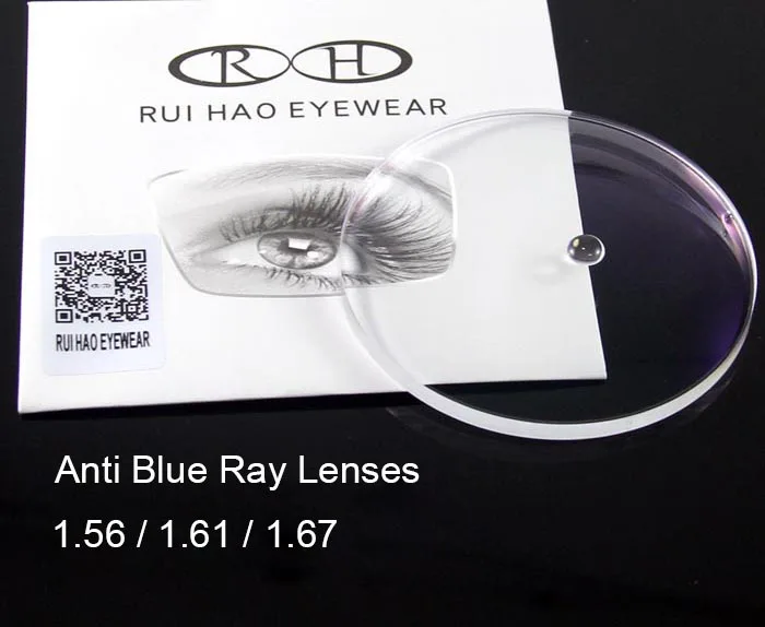 Название: линзы из смолы с защитой от синего излучения Бренд: RUI HAO EYEWEAR Количество: 1/пара (2 шт.) Пол: женщин, мужчин, детей Индекс: 1,553/1,61/1,67 Материал: CR-39 смола с антибликовым покрытием. Твердые, стойкие покрытия, антибликовые покрытия. Линзы с антибликовым покрытием, УФ-защитой, супер светильник, очень чистый! Рекомендуется для прочности SPH менее-10,00 или + 5,00; Рекомендуется для прочности CYL менее 2,00. Перед покупкой, пожалуйста, дайте нам знать о прочности линз перед заказом!