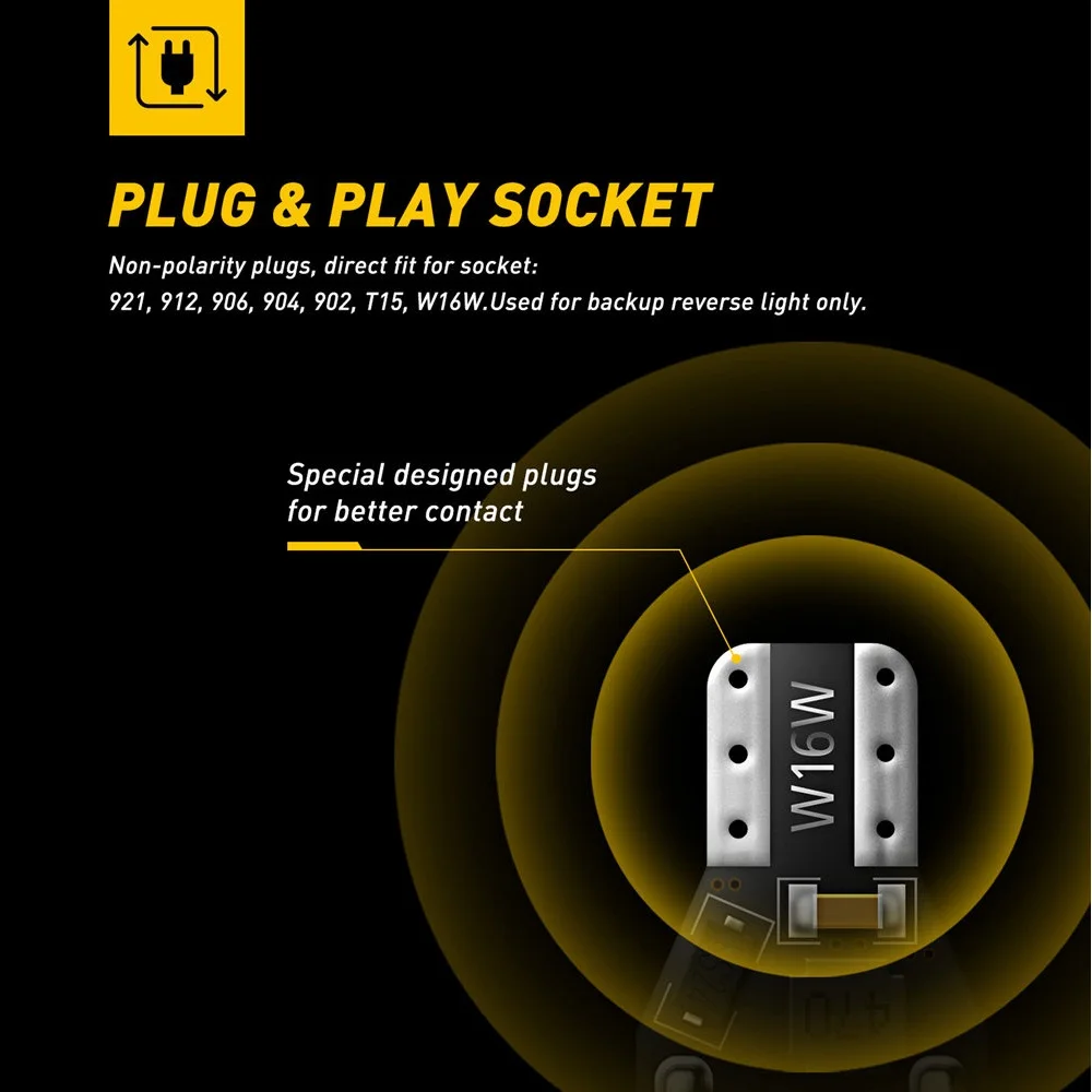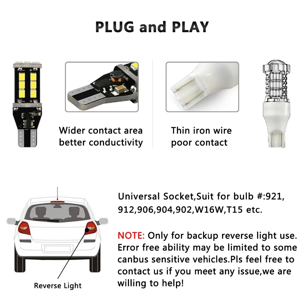 Автомобильный светодиодный светильник заднего хода Напряжение: 12 В Температура: 6000K Разъем: T15 W16W 906 579 901 904 908 909 912 914 915 916 917 918 920 921 922 923 926 927 928 939 и т. д Для обратного светильник сигнала поворота, угловой светильник, парковочный светильник, боковой габаритный светильник, задний светильник, и запасной светильник s и т. Д.