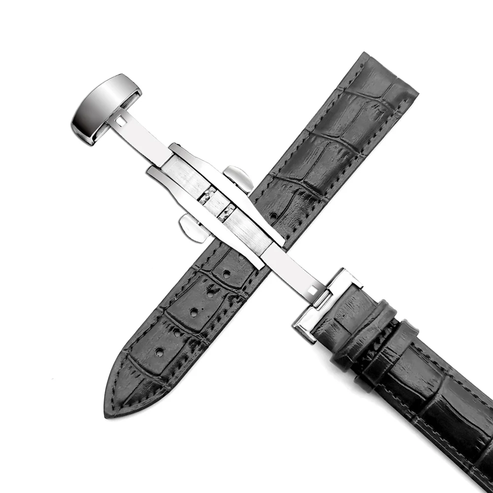 Ремешки для наручных часов из натуральной кожи, 14-24 мм, Универсальные часы с пряжкой-бабочкой, стальной ремешок с пряжкой, браслет на запястье + инструмент