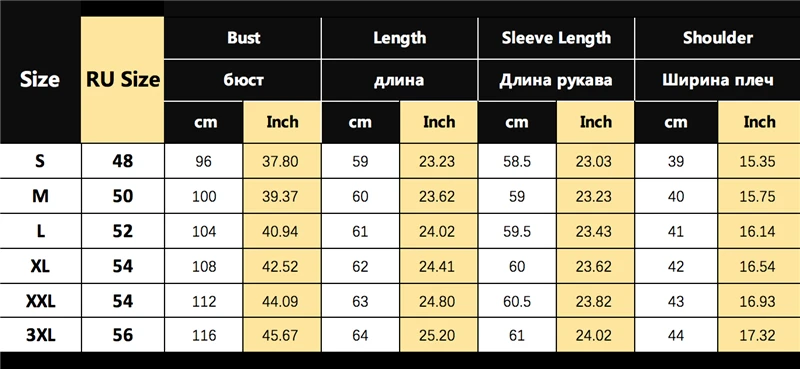 Таблица размеров
