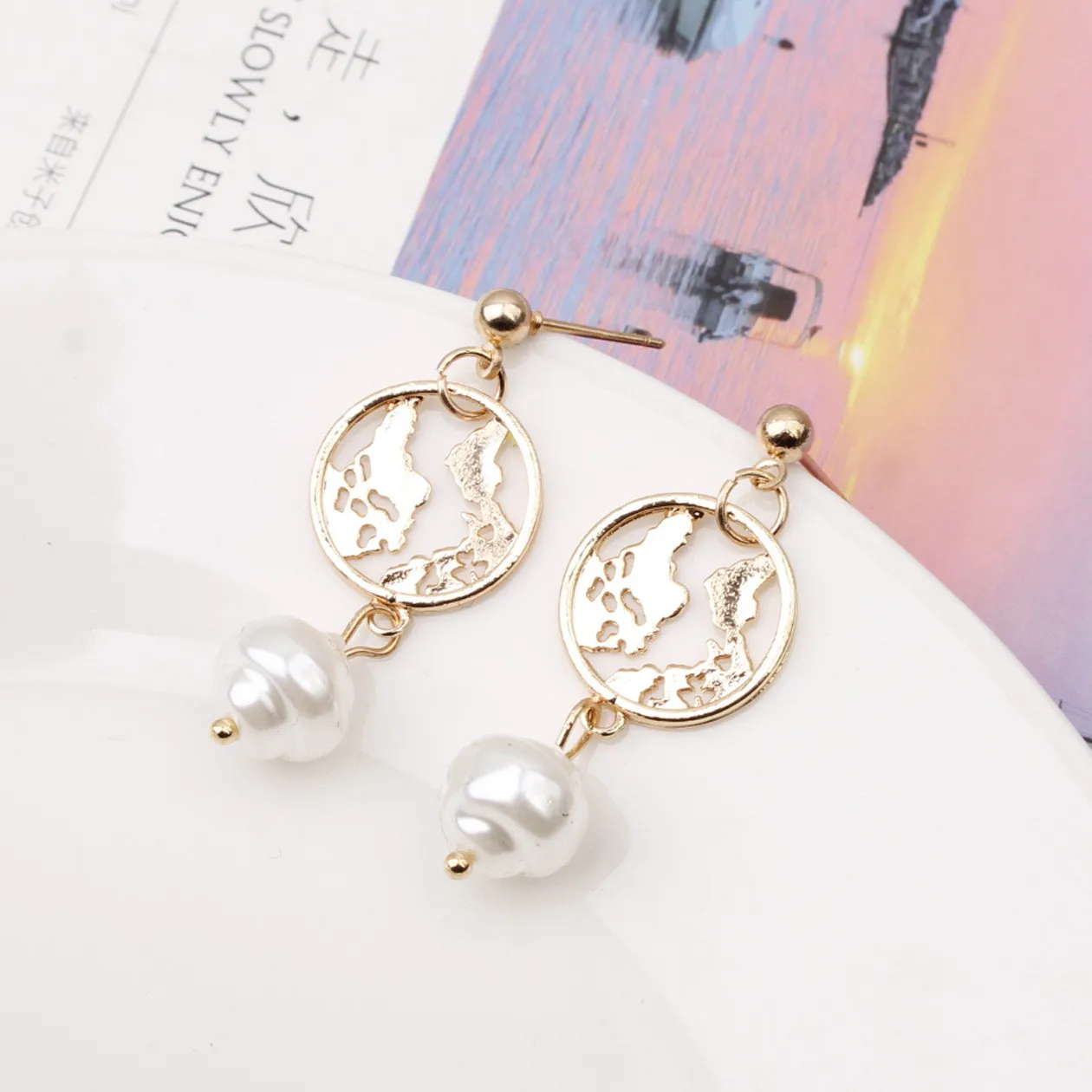 Сеть красный металл неправильной формы бусины геометрические креативные серьги женские ювелирные изделия