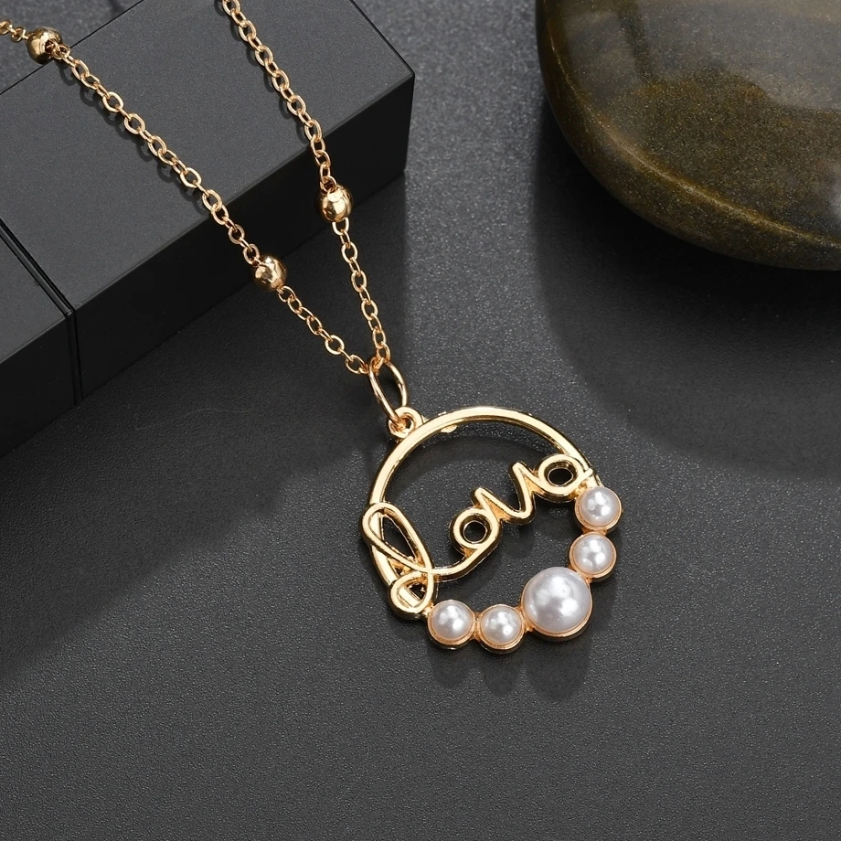 Простое женское ожерелье из сплава, ожерелье с имитацией жемчуга с Лунной любовью, красивое романтическое ювелирное изделие для свадебной вечеринки