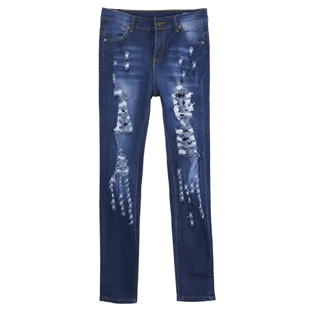 Женские тонкие потертые рваные градиентные длинные джинсы, джинсовые сексуальные обычные брюки