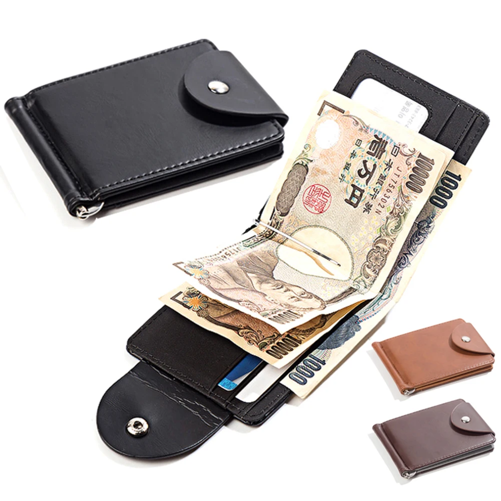 Мужской короткий кошелек с зажимом для денег, металлический кожаный тонкий Мужской органайзер для карт, кошелек на пуговицах