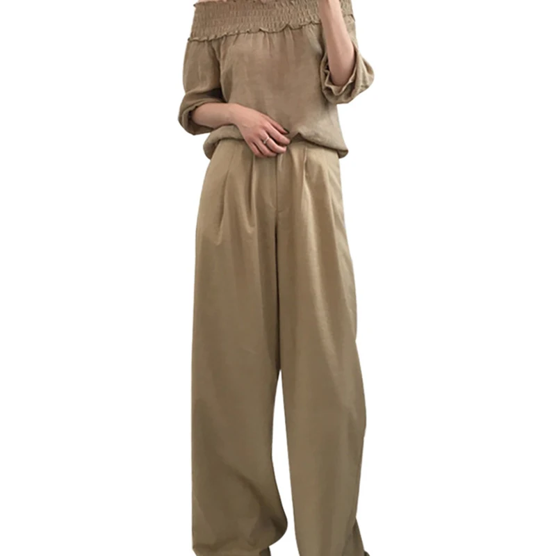 Женские длинные брюки TWOTWINSTYLE весенние однотонные с высокой талией большие