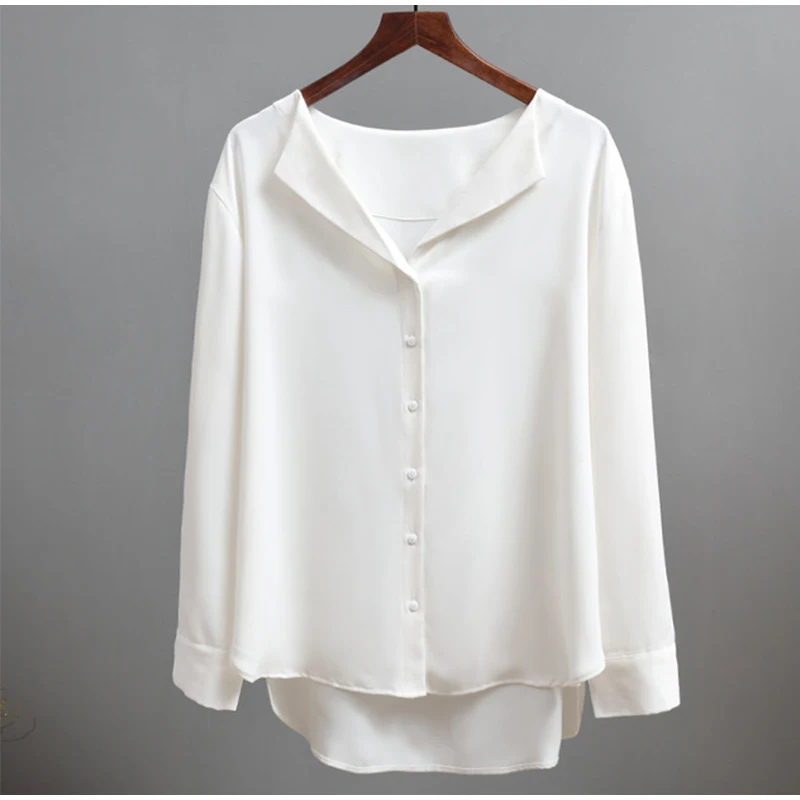 Женская белая шифоновая рубашка с v-образным вырезом и пуговицами, Женские однотонные нерегулярные летние рубашки с длинным рукавом, 2020, корейские модные женские мягкие Топы