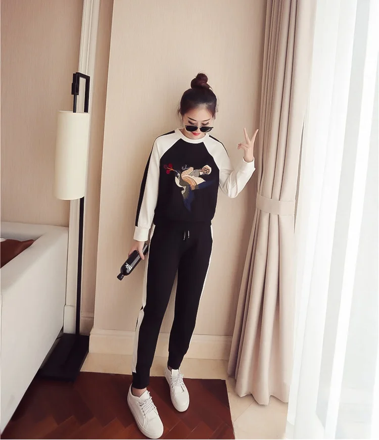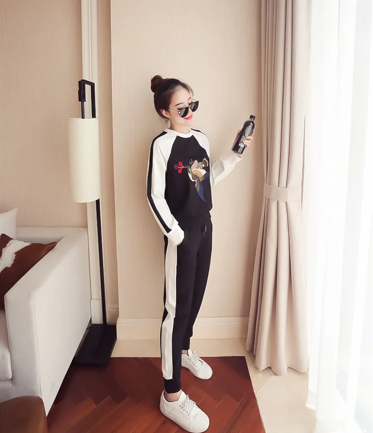 Женский спортивный костюм UHYTGF, комплект из 2 предметов, милый тонкий осенний спортивный комплект для девочек, комплект из двух предметов, повседневный топ + штаны, элегантные черные комплекты, 1475