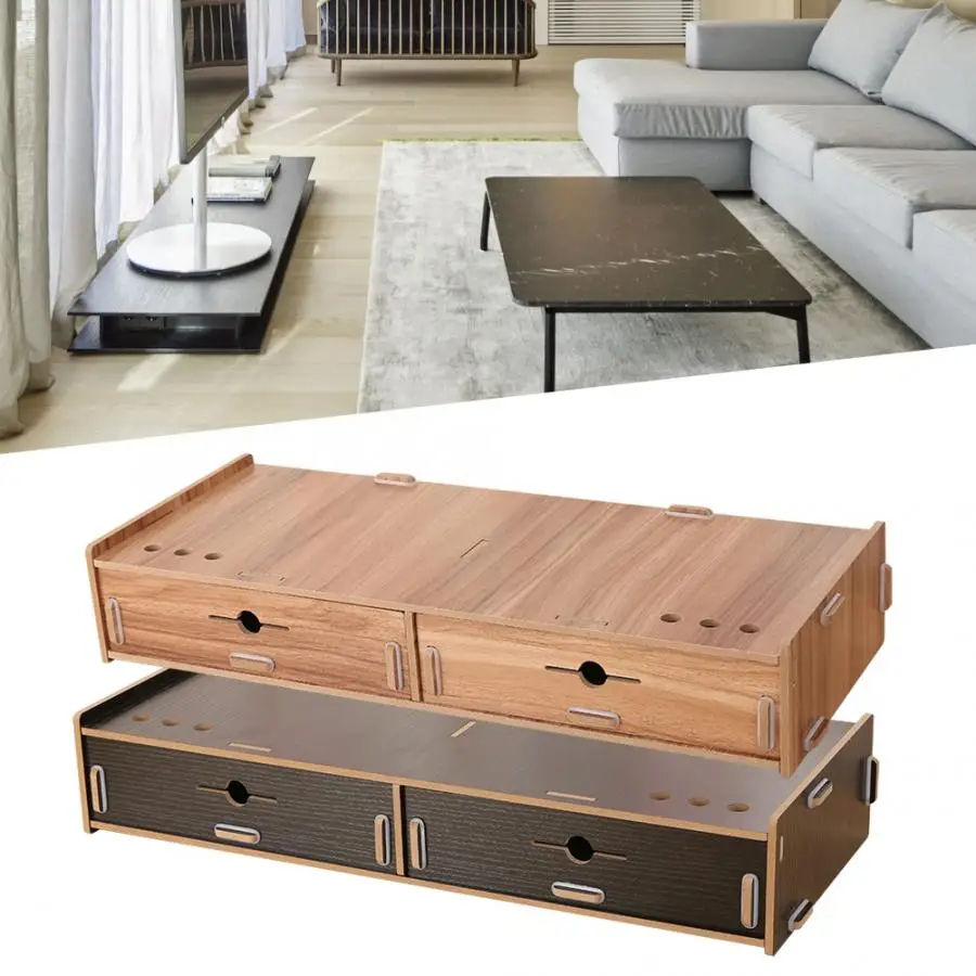 Деревянный компьютер монитор Стенд клавиатура настольный органайзер коробка для хранения с ящиком