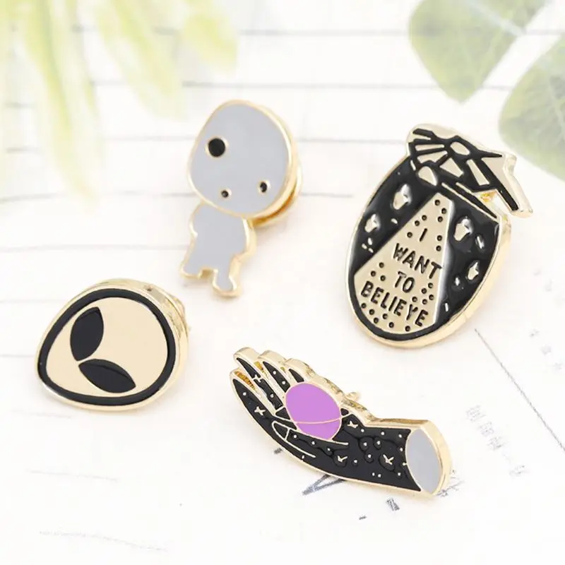 - У нас есть различные UFO, alien, брошь в форме руки, очень простой и элегантный дизайн, очень милый и привлекательный на вашей одежде.