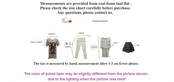 Примечание: В связи с тем, что китайские размеры отличаются от других стран, пожалуйста, внимательно проверьте таблицу размеров.