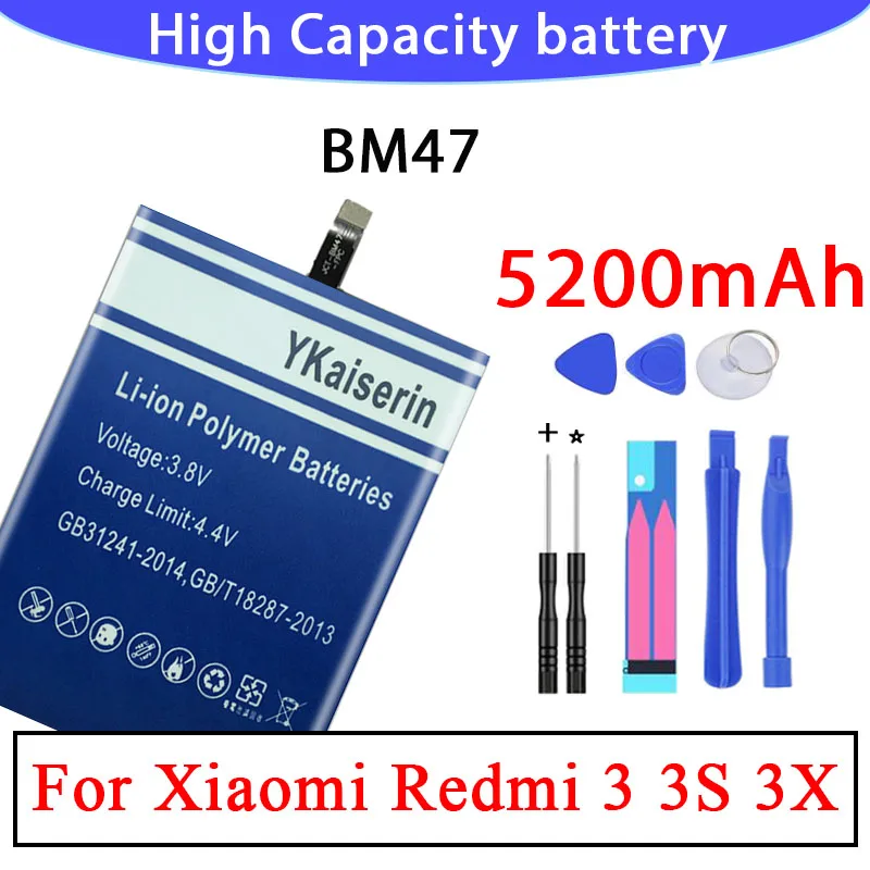 | Для XIAOMI | BM47 | 5200 мАч | Для Xiaomi Redmi 3 3S 3X Xiao mi Hongmi Redmi 4x |