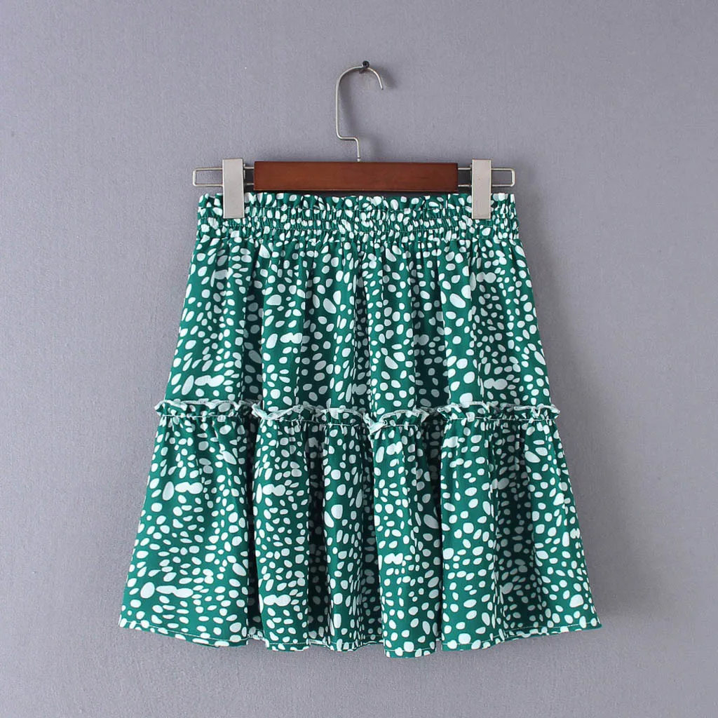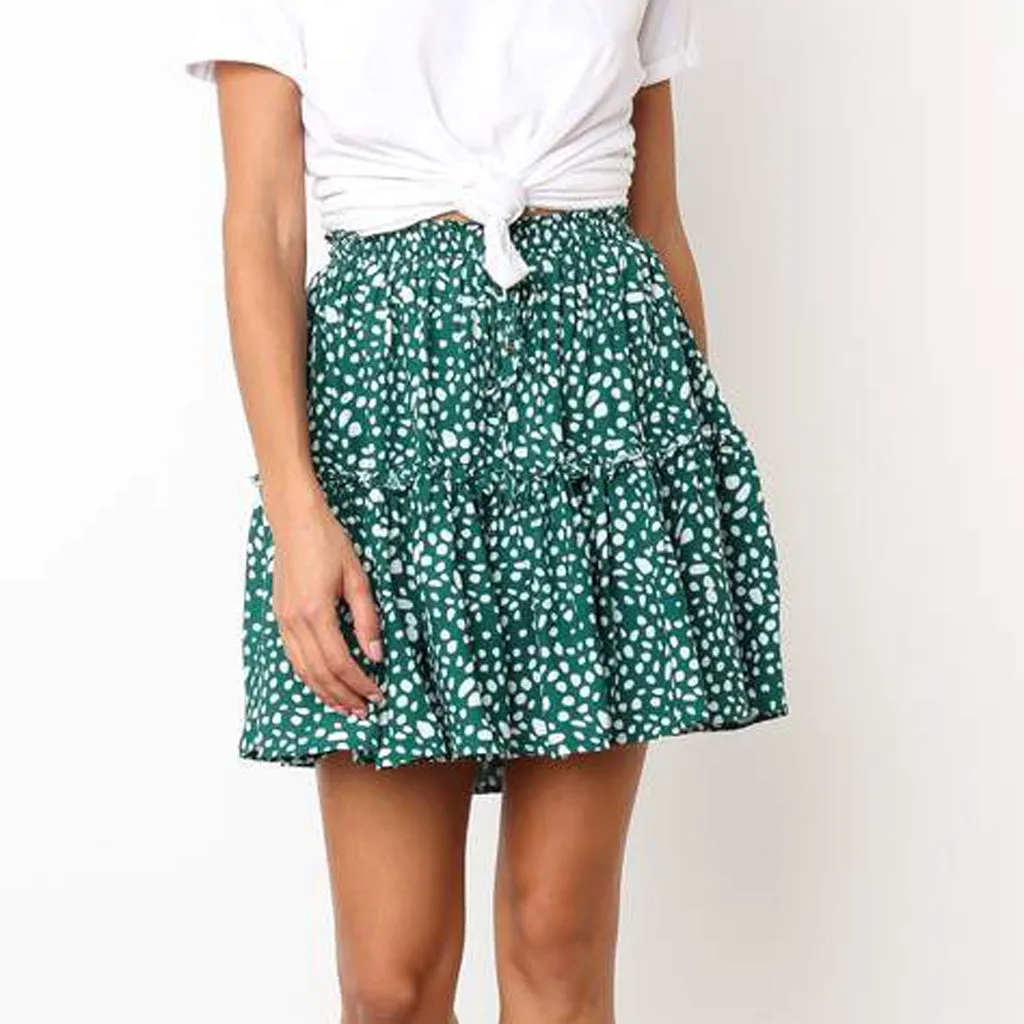 Особенности: узор в горошек, оборки, а-силуэт, плиссировка, шнуровка, короткая юбка, свободный крой, повседневная одежда,Уличная одежда, Середины талии.