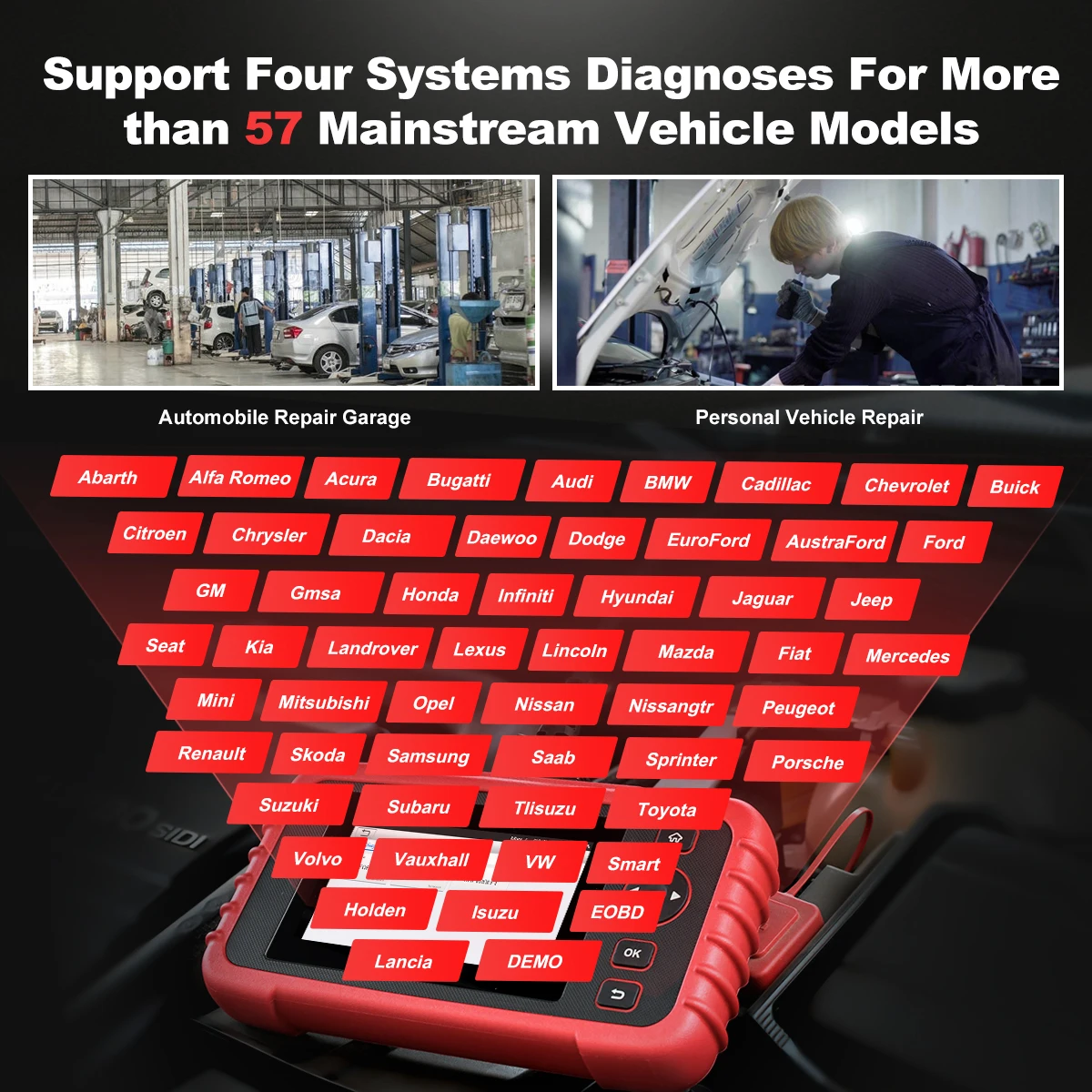 【 Широкие автомобили Coverage】 Запуск CRP129X obd2 сканер имеет совместимость с большим количеством устройств ставки с несколько режимов OBD2 автотранспортных средств. В диагностический сканер работает на 57 марки автомобилей, выпущенные (от производителя) из 1996 и вперед, до тех пор, пока автомобиль имеет 16-контактный диагностический OBD-II порт. Его использование, таким образом, широкое. Пять специальных услуг поддерживаемый список автомобилей(После 1996 с 16 контактный разъем): 1.Сброса масла (51 марки автомобилей, выпущенные) ACURA,AUDI, BMW,BORGWARD,BUGATTI,CITROEN,CHRYSLER/DODGE/JEEP, гусеничный Экскаватор DAEWOO, Феррари, Фиат, гм, HONDA,HYUNDAI,JAGUAR,KIA,LAMBORGHINI,LANCIA,LANDROVER,MASERATI,MAZDA,MAYBACH ,MERCEDES-BENZ, маленький размер, MITSUBISHI,OPEL,PEUGEOT, протонный порше, Рено, ROLLS-ROYCE,ROMEO, Сааб, место правильное питание, уход за кожейУмный, SUBARU,SUZUKI VAUXHALL,VOLVO,VW 2.Сброс тормозов (53 марки автомобилей, выпущенные) ACURA,AUDI, BMW,BORGWARD,BUGATTI,CHRYSLER JEEP DODGE,CITROEN, гусеничный Экскаватор DAEWOO, Феррари, FIAT,FORD,GM,HONDA,HYUNDAI,JAGUAR,KIA,LANCIA,LANDROVER,LEXUS,MAZDA,MASERATI,MAYBACH, MERCEDES-BENZ, маленький размер, NISSAN,OPEL,PEUGEOT, порше, Рено, ROLLS-ROYCE,ROMEO,SAAB,SCION, сиденья,SKODA OCTAVIA III, SUBARU,TOYOTA,VAUXHALL,VOLVO,VW 3.SAS сброса (56 марки автомобилей, выпущенные) ACURA,AUDI,BMW,CHRYSLER JEEP DODGE,CITROEN,DACIA,DAEWOO,DAIHATSU, феррари, FIAT,FORD,GM,HONDA,HYUNDAI,INFINITI,JAGUAR,KIA,LANCIA,LANDROVER,LEXUS,MASERATI,MAYBACH,MAZDA,MERCEDES-BENZ, маленький размер, MITSUBISHI,NISSAN,OPEL,PEUGEOT, порше, Рено, ROMEO,SCION,SEAT,SUZUKI,SKODA OCTAVIA III, смарт, SUBARU,TOYOTA,VAUXHALL,VOLVO,VW 4.Дроссельной заслонки сброса (50 марки автомобилей, выпущенные) ACURA,AUDI,BMW,CHRYSLER,CITROEN,DACIA,DAEWOO,FIAT,FORD,HONDA,HYUNDAI,INFINITI,JAGUAR,KIA,LANCIA,LANDROVER,LEXUS,MAYBACH,MAZDA,MERCEDES-BENZ, маленький размер, MITSUBISHI,NISSAN,OPEL,PEUGEOT, порше, Рено, ROMEO,SAAB, сиденья,SKODA OCTAVIA III, идеально подходит для SUZUKI,TOYOTA,VOLVO,VW 5.Система контроля давления в шинах сброса (51 марки автомобилей, выпущенные) ACURA,AUDI,BMW,CITROEN,CHRYSLER, Феррари, FIAT,FORD,GM,HYUNDAI,HONDA,INFINITI, J AGUAR,KIA,LANCIA,LANDROVER,LEXUS,MASERATI,MAZDA,MERCEDES-BENZ,MITSUBISHI, маленький размер, NISSAN,OPEL,PEUGEOT, порше, Рено, SCION, сиденья,SKODA OCTAVIA III, смарт, SUBARU,SUZUKI,TOYOTA,VOLVO,VW