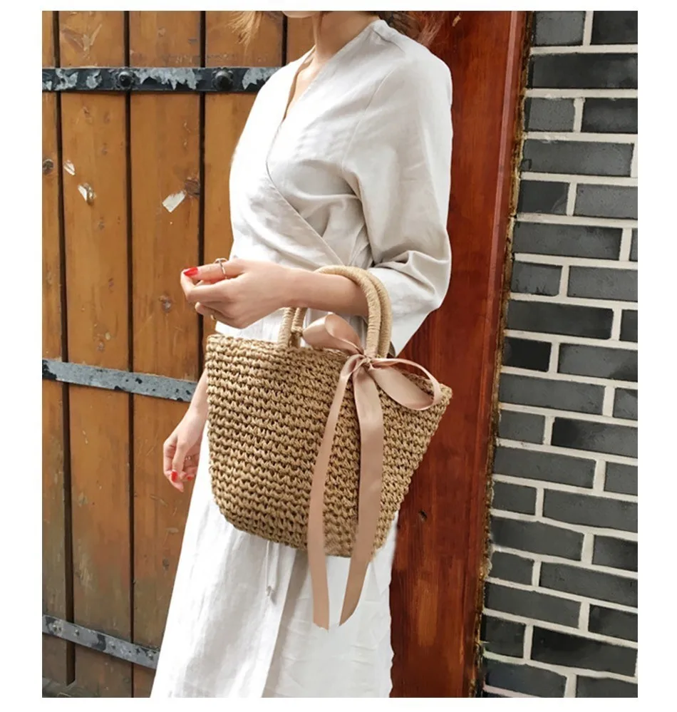 Herald Fashion большая женская Соломенная Сумка летняя пляжная сумка на плечо с лентой