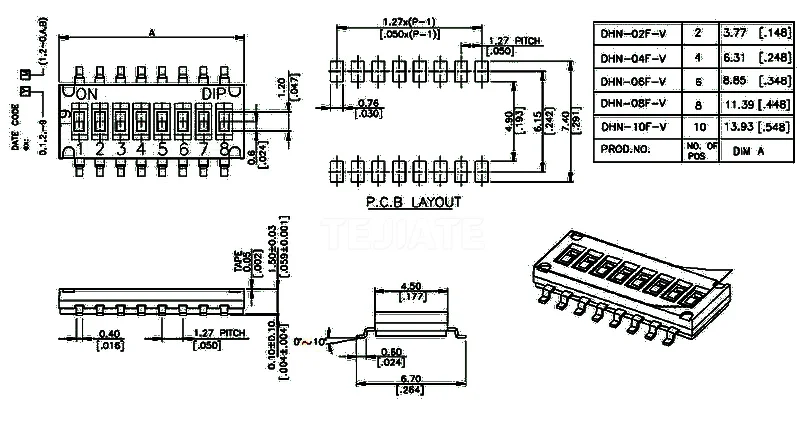 Переключатель es 1 27 мм погружной переключатель KE SMD DSHP04TSGER 1P 2P 3P 4P 5P 6P 8P 10P |