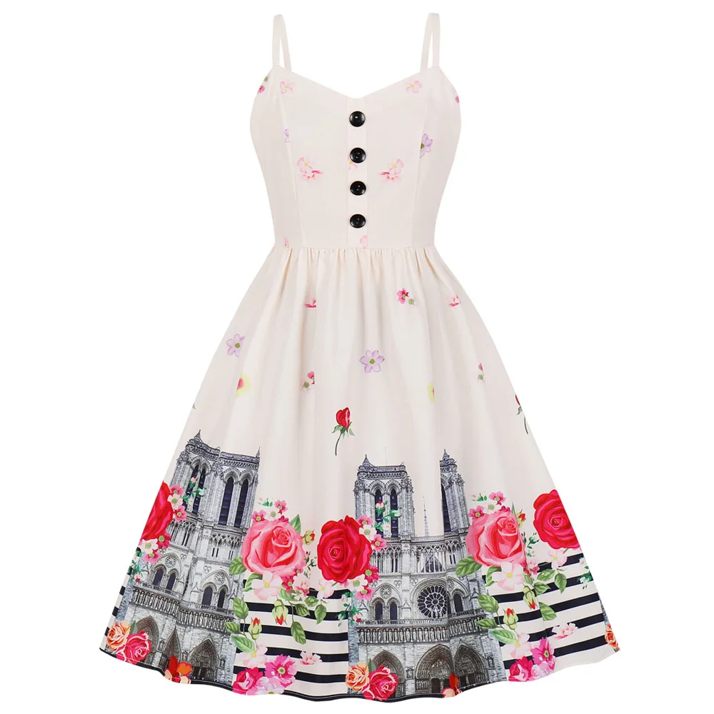 * Винтажный Милый принт с пуговицами и бабочками в европейском Королевском Стиле придает вам элегантный и элегантный вид в стиле ретро; Облегающий и расклешенный силуэт подчеркивает Вашу фигуру