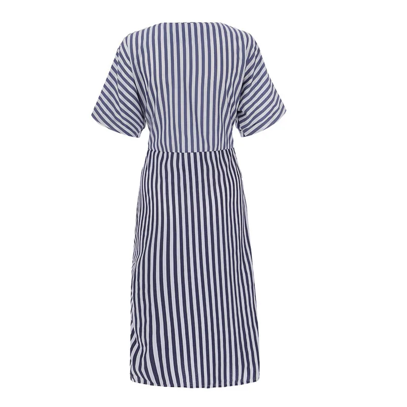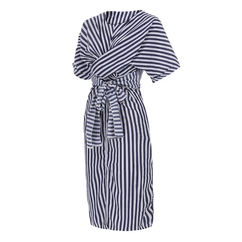 Женское летнее хлопковое синее Полосатое Бандажное длинное платье с Разрезом Длинное Платье