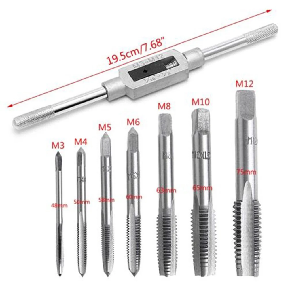 8 шт. набор метчиков с резьбой M3 M4 m5 m6 m8 m10 m12 с 1 шт. регулируемым гаечным ключом 1/16-1/2 ''.
