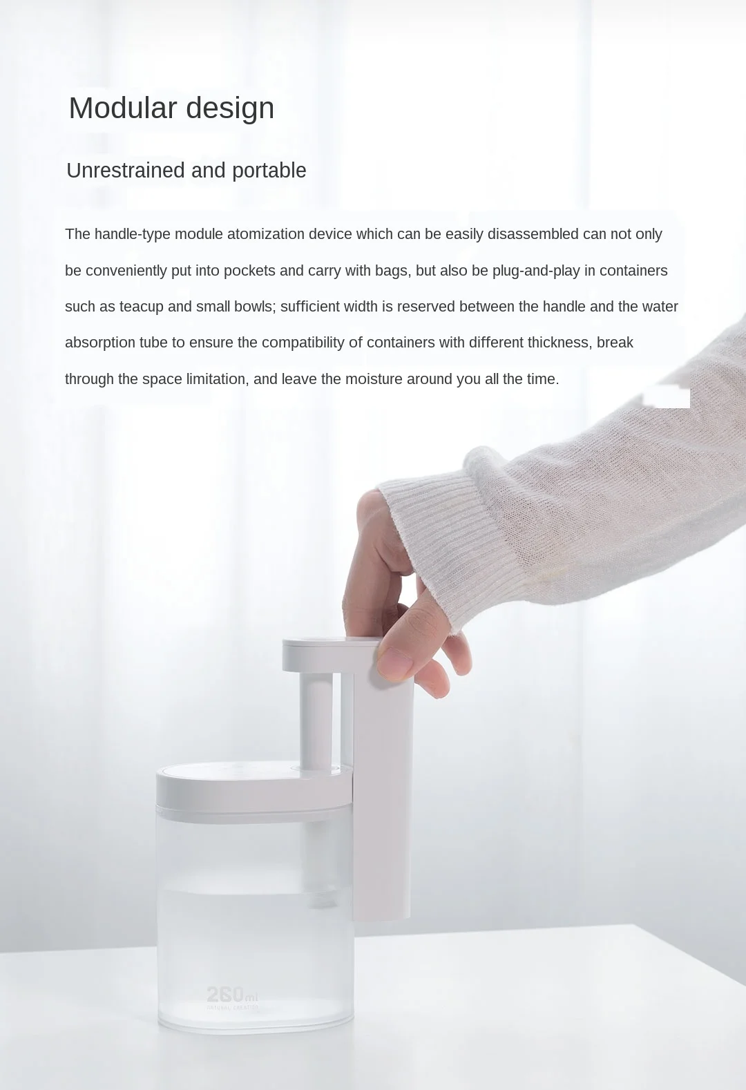 Легко снимаемое модульное распыляющее устройство типа ручки можно поместить в карман и носить с собой, и его можно вставить и использовать в чашке, маленькой миске или т. Д. Между ручкой и всасывающей трубой предусмотрена достаточная ширина, чтобы обеспечить совместимость с контейнерами различной толщины, нарушая ограничения времени и пространства.