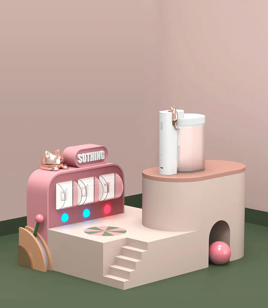 SOTHING черпает вдохновение из геометрических символов и использует экспрессию устройства для преобразования и сочетания традиционных увлажнителей. Столкновение геометрических элементов и цветовых блоков представляет собой баланс, как плоскость.