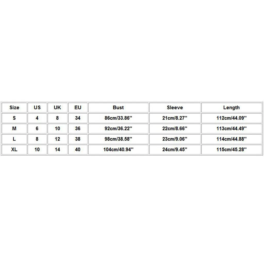 | Размеры: S | Свяжитесь с нами: 4 | UK:8 | ЕС: 34 | Обхват груди: 86 см/33,86 дюйма | Рукав: 21 см/8,27 дюйма | Длина: 112 см/44,09 дюйма |