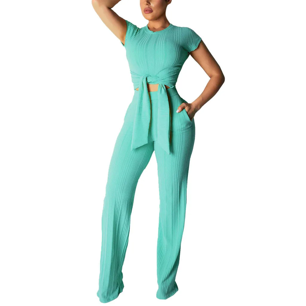 Женский костюм JAYCOSIN, однотонный комплект из двух предметов, топ с коротким рукавом и длинные штаны, облегающие летние комплекты, 2019