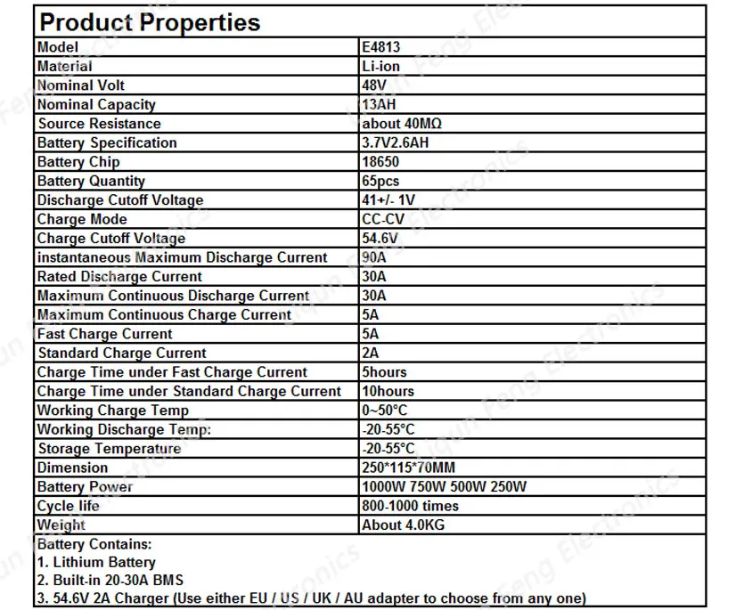 Высокая Мощность 750W 1000 ваттовый мотовелосипед; Батарея пакет 48 V 13AH 48 V E-скутер способный преодолевать Броды Li-Ion Батарея 13AH с 30A BMS 2A Зарядное Устройство Бесплатная таможенный сбор.