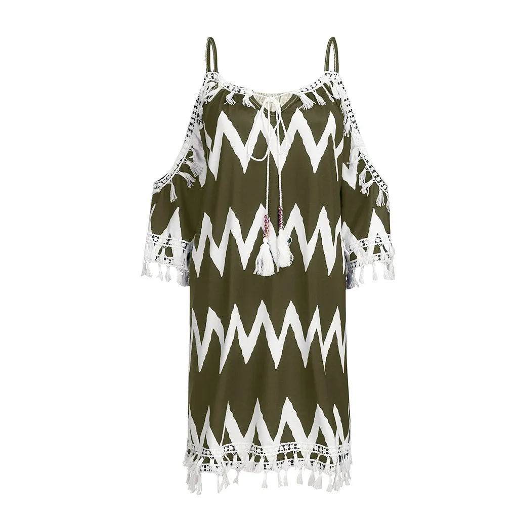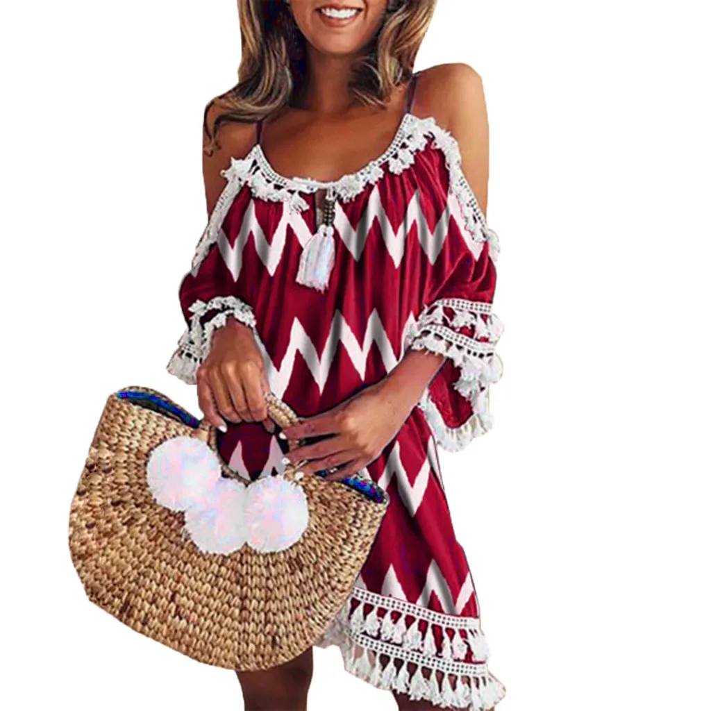 Для женщин с открытыми плечами платье кисточкой в богемном стиле с принтом коктейльное вечерние Пляжные наряды