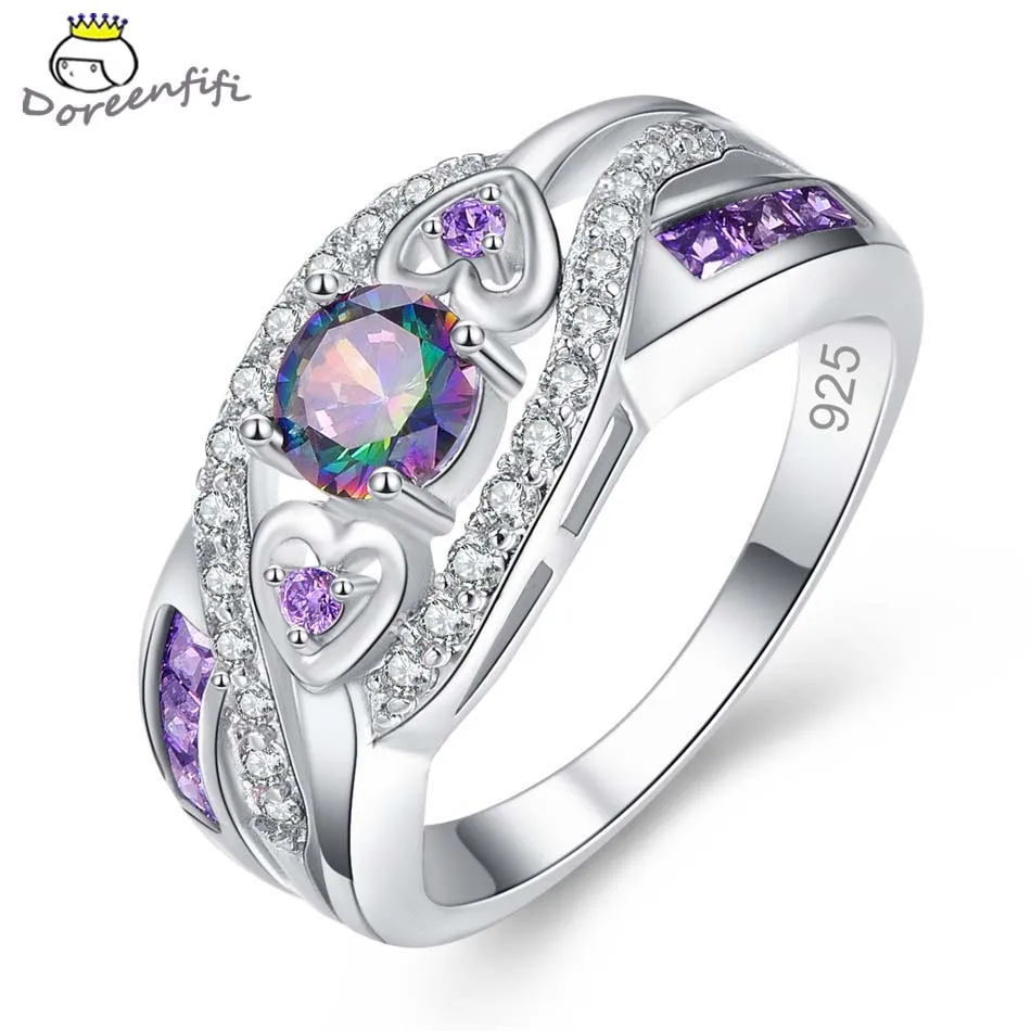 Женское кольцо из стерлингового серебра 925 пробы с сердечками, разноцветное И фиолетовое, белое, подарок для влюбленных, Размер 6 7 8 9 1,0 долл. США/Штук